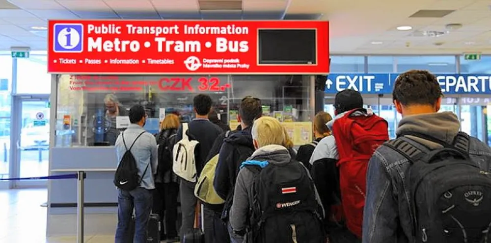 两个航站楼的到达大厅均设有服务柜台,可在此处购买机场快线车票或PID的交通票,此外也可在黄色自动售票机购买PID的交通票。