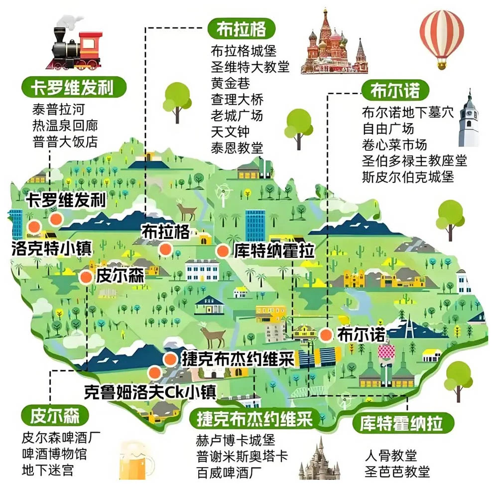 捷克旅游地图(捷克主要旅游目的地介绍)