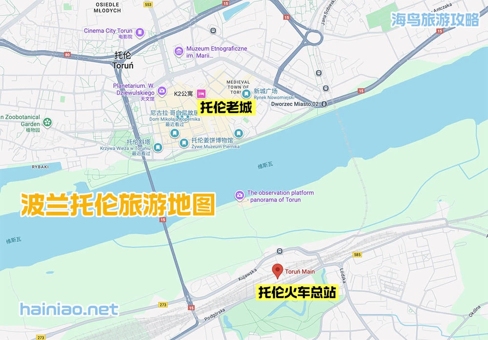 注意:托伦有多个火车站,其中离老城区比较近的是Toruń Miasto,另一个火车站Toruń Wschodni则离旧城区很远。