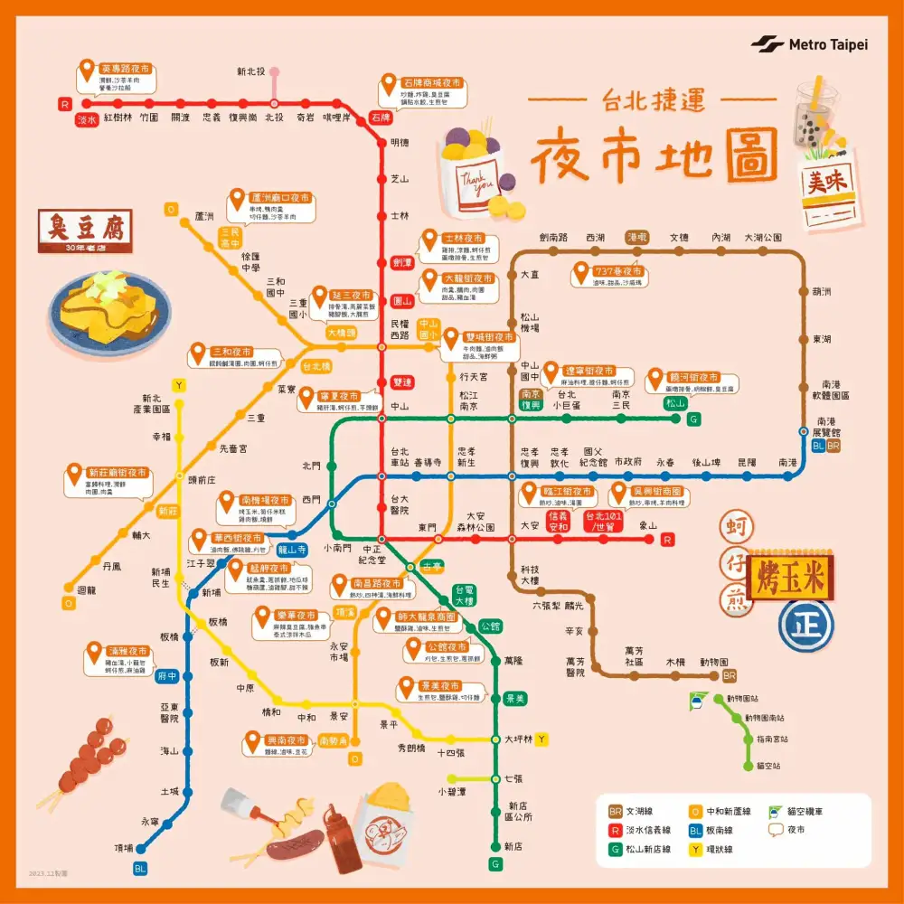 • 台北捷运夜市地图2025:台北旅游攻略之台北夜市懒人包,5条捷运路线、25个夜市、必吃美食指南