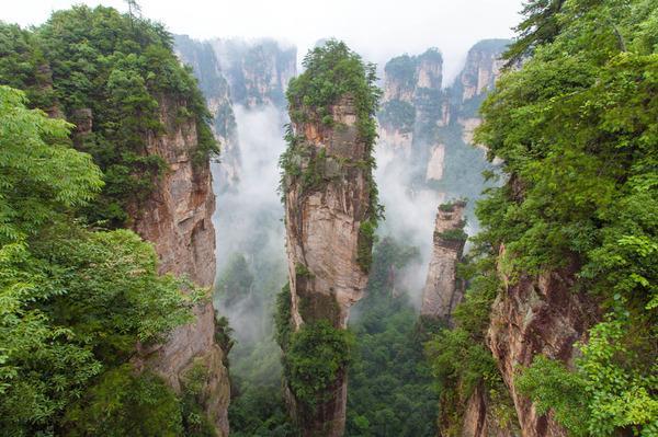张家界地貌:张家界独特的石英砂岩峰林地貌在世界上独一无二,是大自然经过亿万年雕琢而成的杰作,具有极高的地质科研价值。