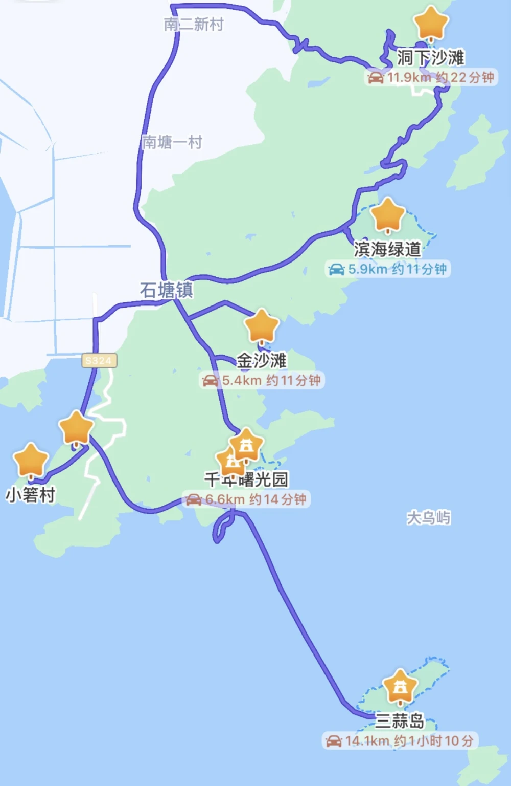 自驾:直接导航 “温岭石塘镇”,从周边城市如杭州、上海、宁波等地出发,车程大约 3-5 小时。